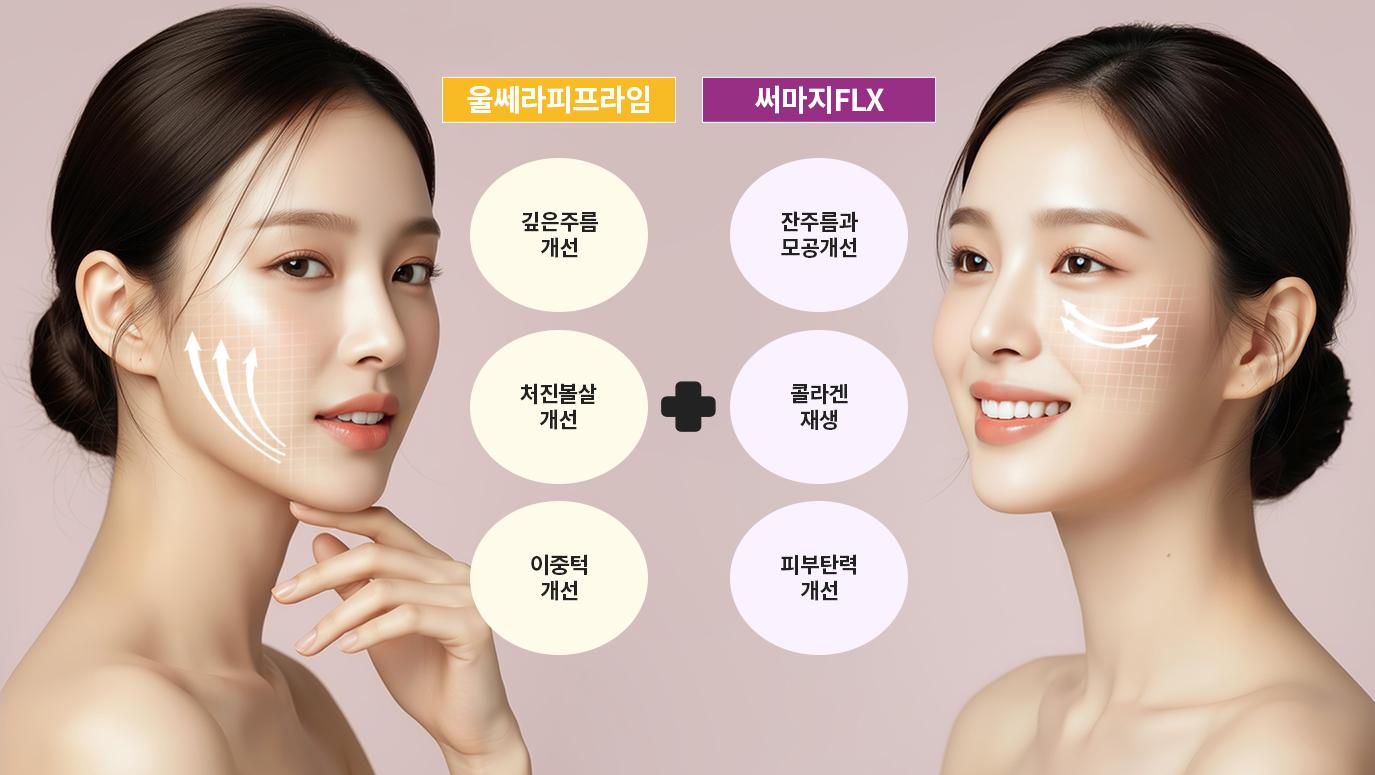울쎄라피프라임과 써마지FLX는 침투하는 깊이와 열을 주는 방식, 적용되는 범위가 다르기 때문에